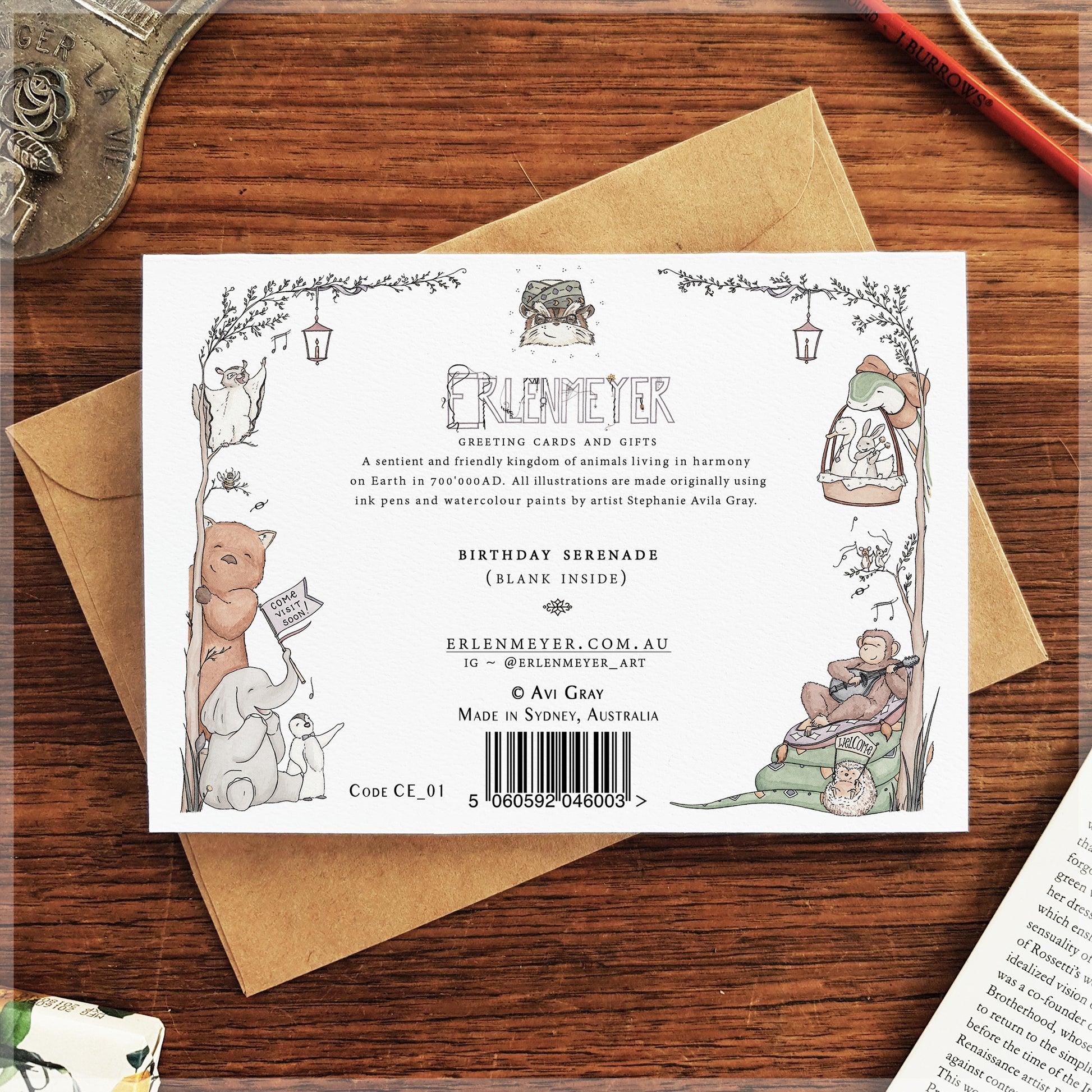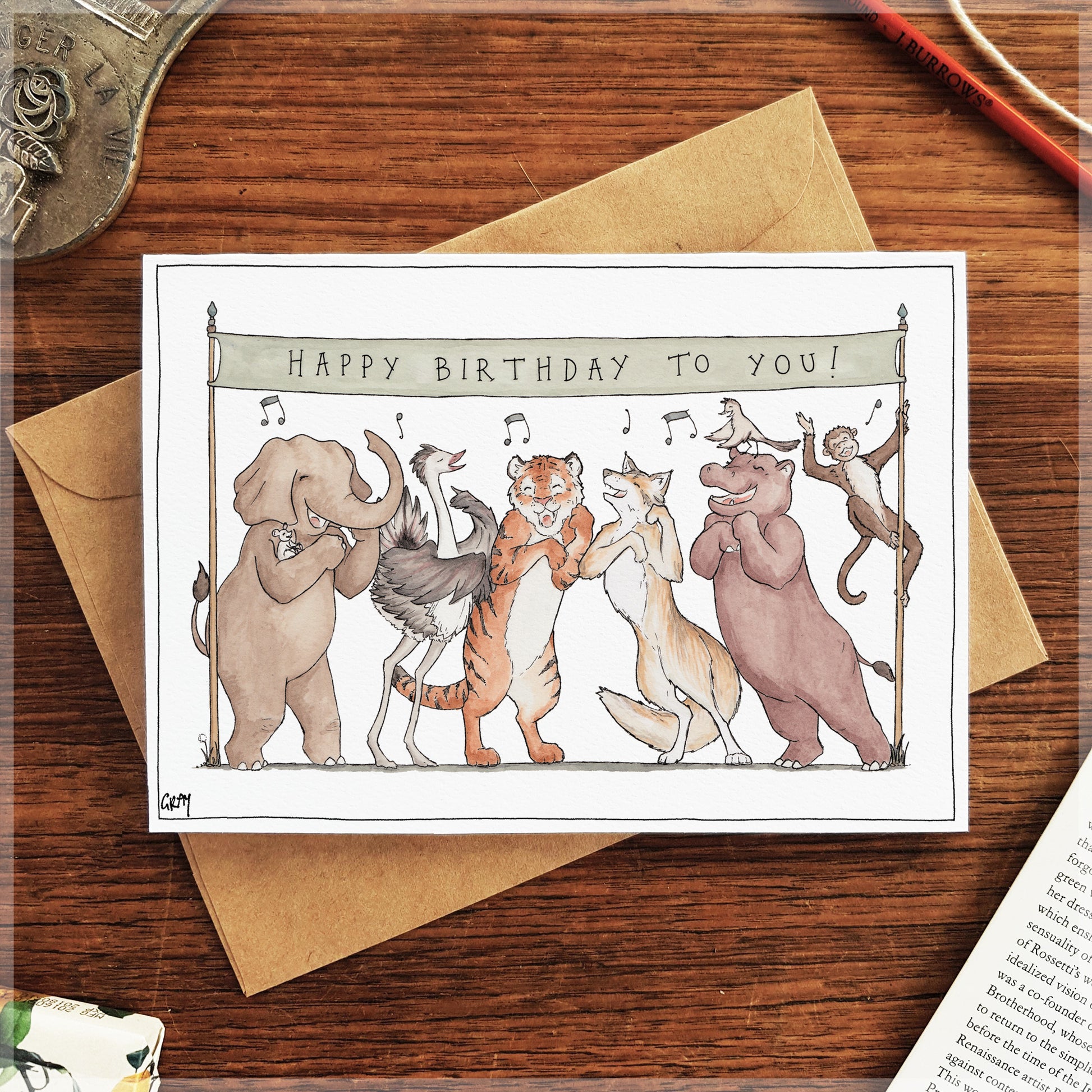 The Erlenmeyer animals love the human idea that we celebrate birthdays with a special song, and have continued our tradition! A perfect card to wish someone a happy birthday!