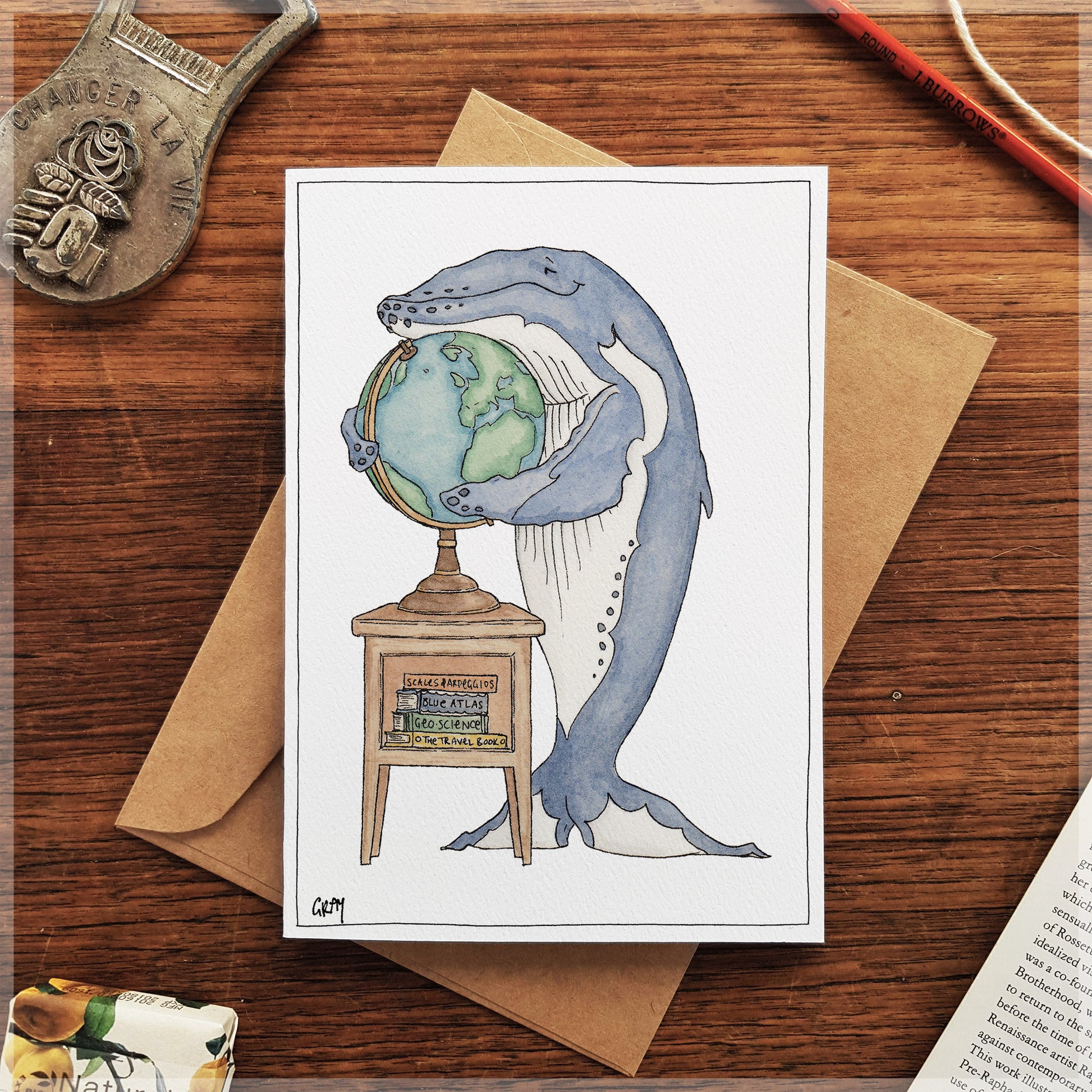 This A6 greeting card has been professionally printed on 300gsm Felt paper. It Includes a brown paper envelope and is wrapped in a plastic sleeve.