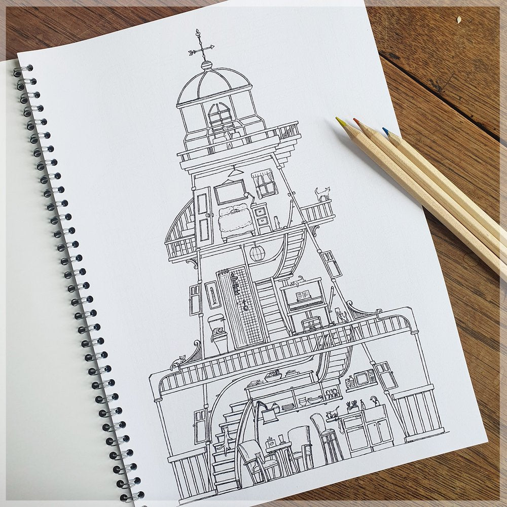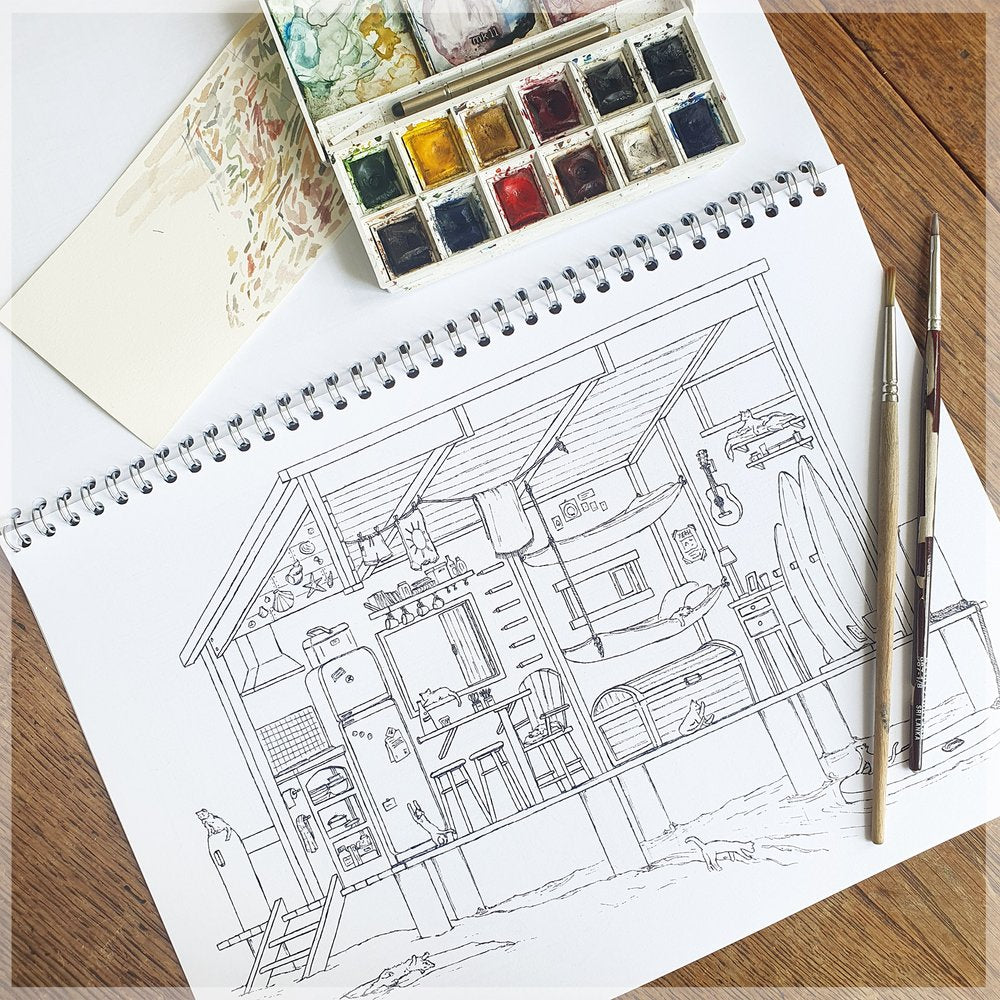 This A4 sized wire bound colouring book contains 12 black and white drawings of houses with 10 cats to be found in each. The back cover of the book shows colour references of the included drawings in case it’s helpful for choosing colours!