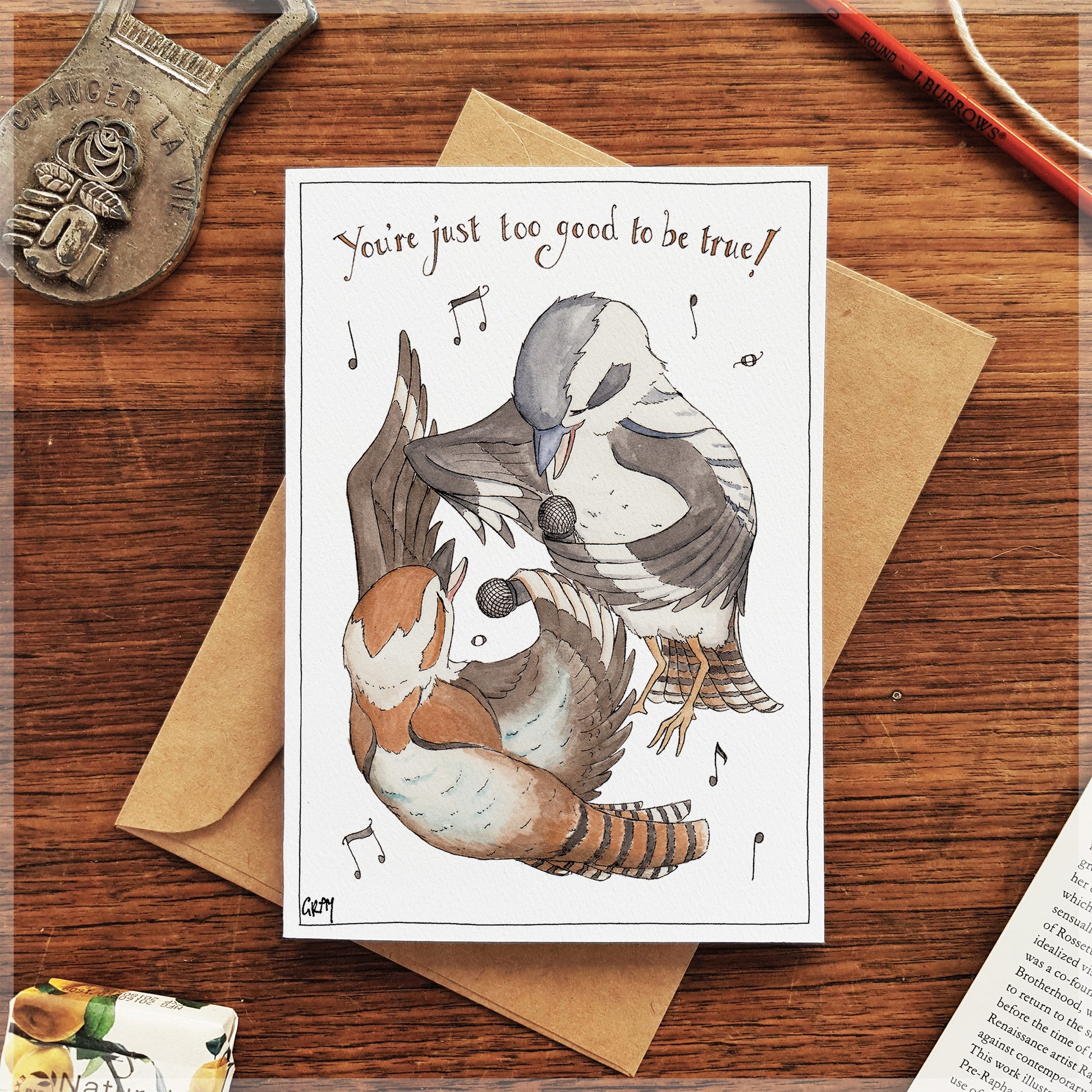 This A6 greeting card has been professionally printed on 300gsm Felt paper. It Includes a brown paper envelope and is wrapped in a plastic sleeve.