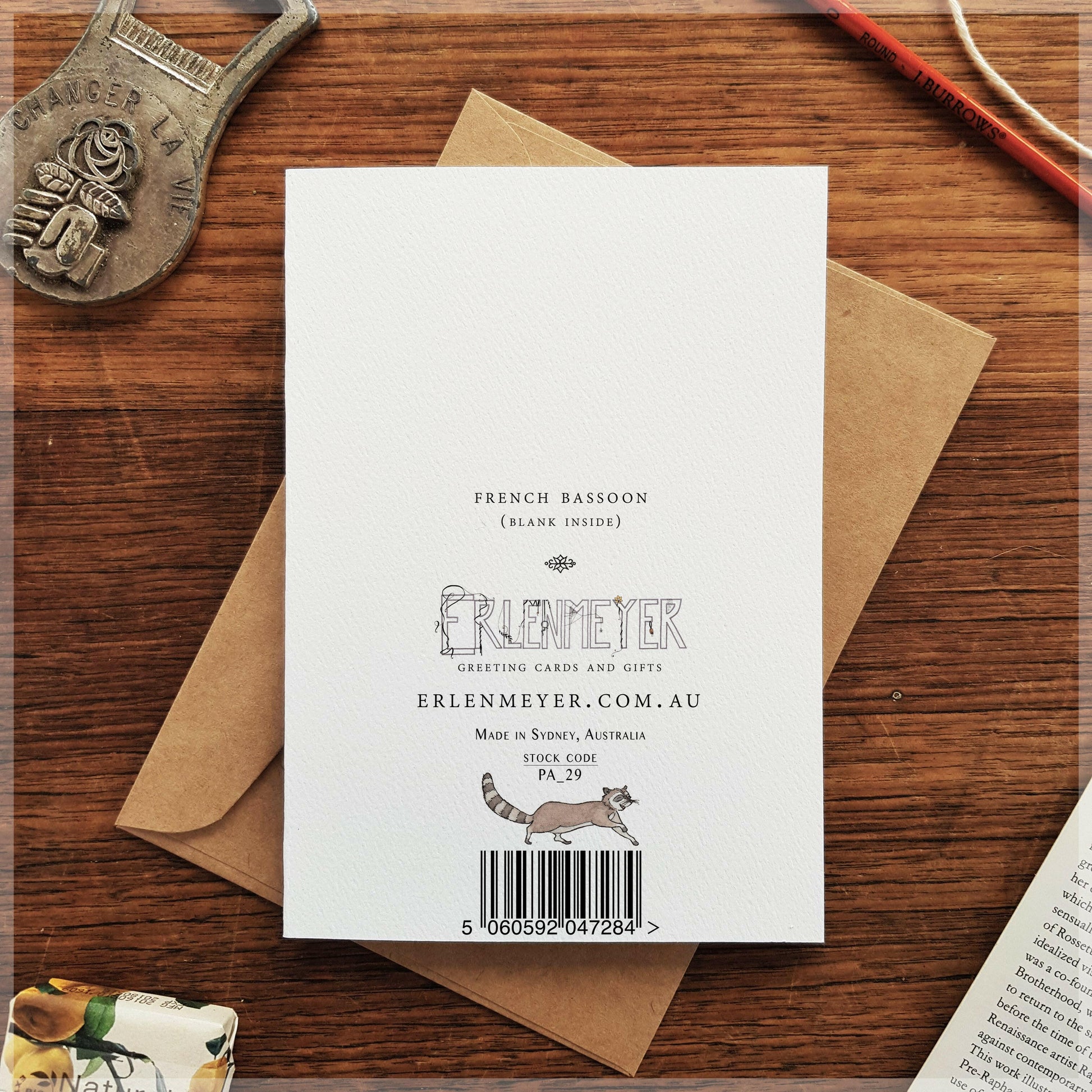 This A6 greeting card has been professionally printed on 300gsm Felt paper. It Includes a brown paper envelope and is wrapped in a plastic sleeve.