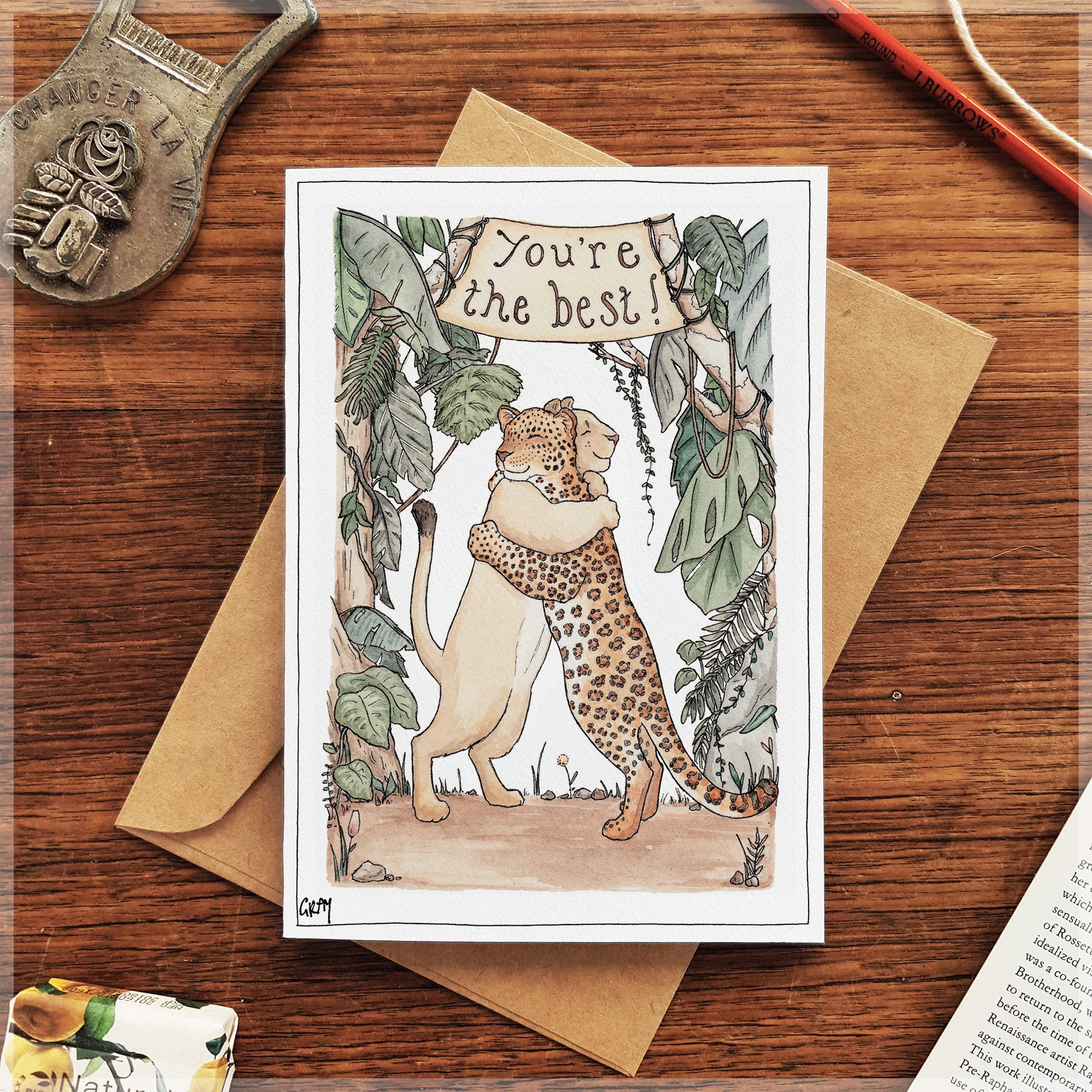 This A6 greeting card has been professionally printed on 300gsm Felt paper. It Includes a brown paper envelope and is wrapped in a plastic sleeve.