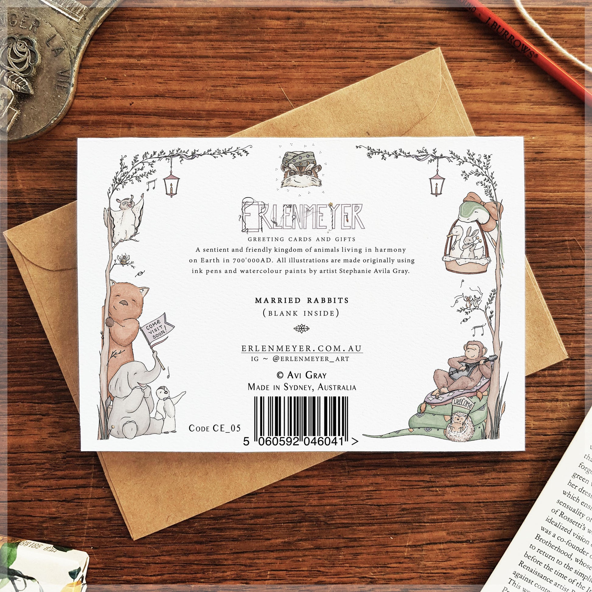 This A6 greeting card has been professionally printed on 300gsm Felt paper. It Includes a brown paper envelope and is wrapped in a plastic sleeve.