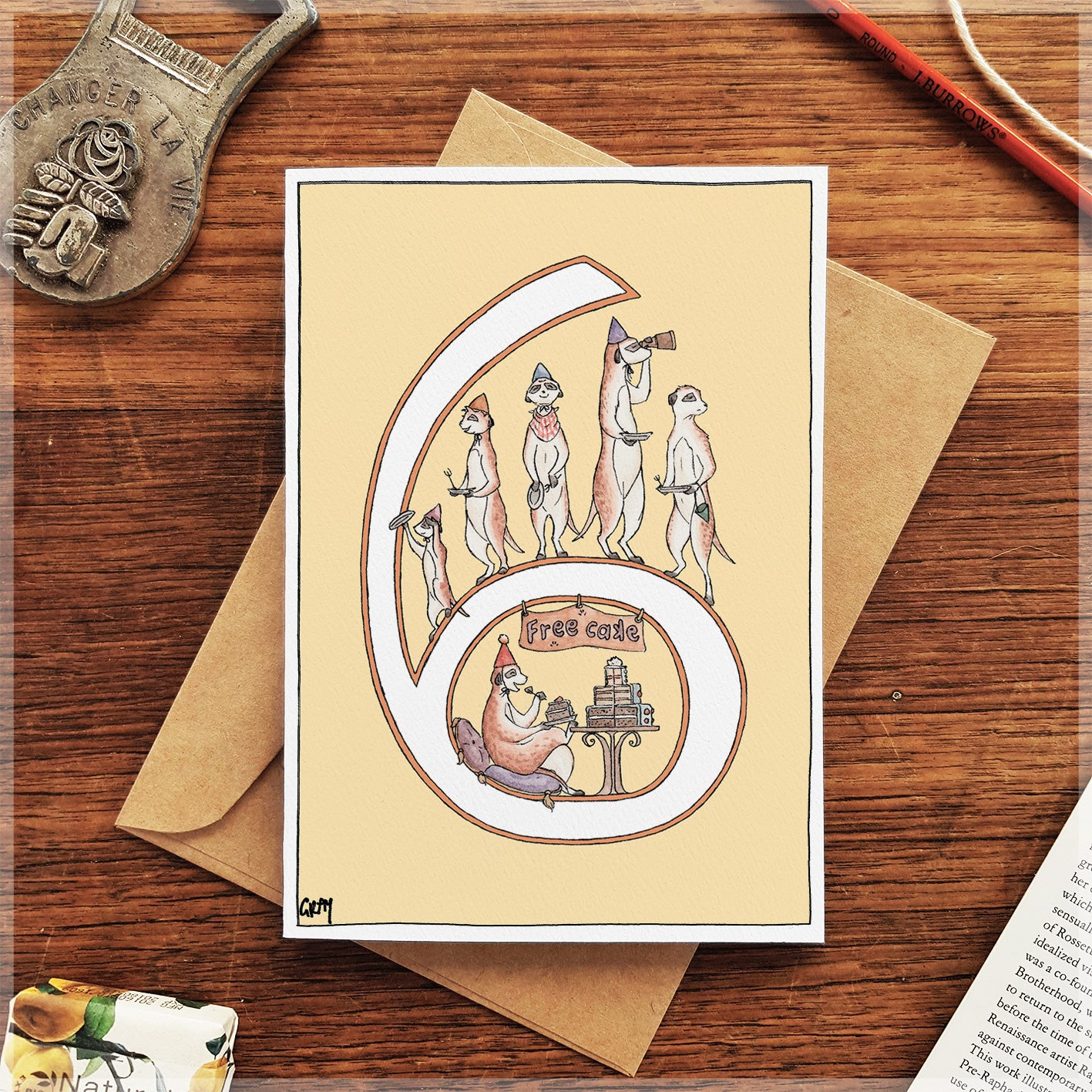 This A6 greeting card has been professionally printed on 300gsm Felt paper. It Includes a brown paper envelope and is wrapped in a plastic sleeve.