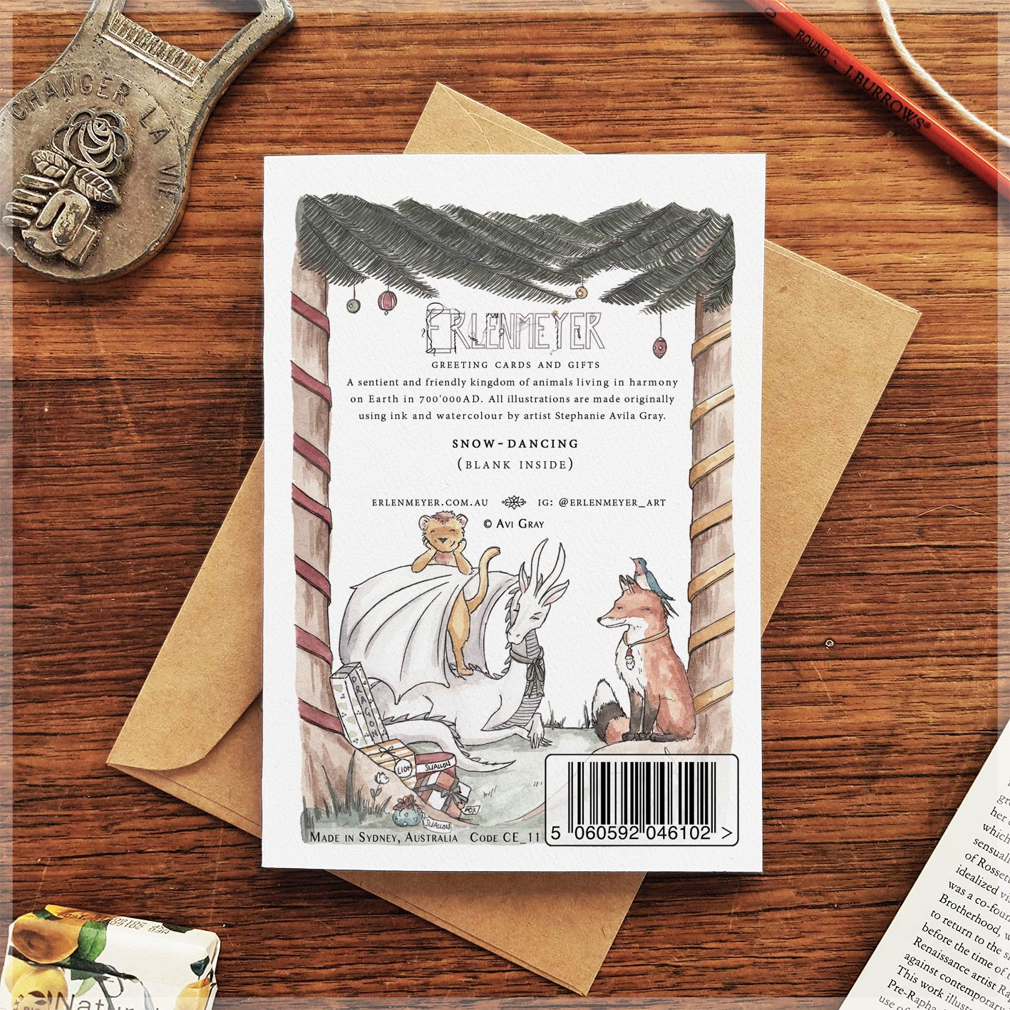 This A6 greeting card has been professionally printed on 300gsm Felt paper. It Includes a brown paper envelope and is wrapped in a plastic sleeve.
