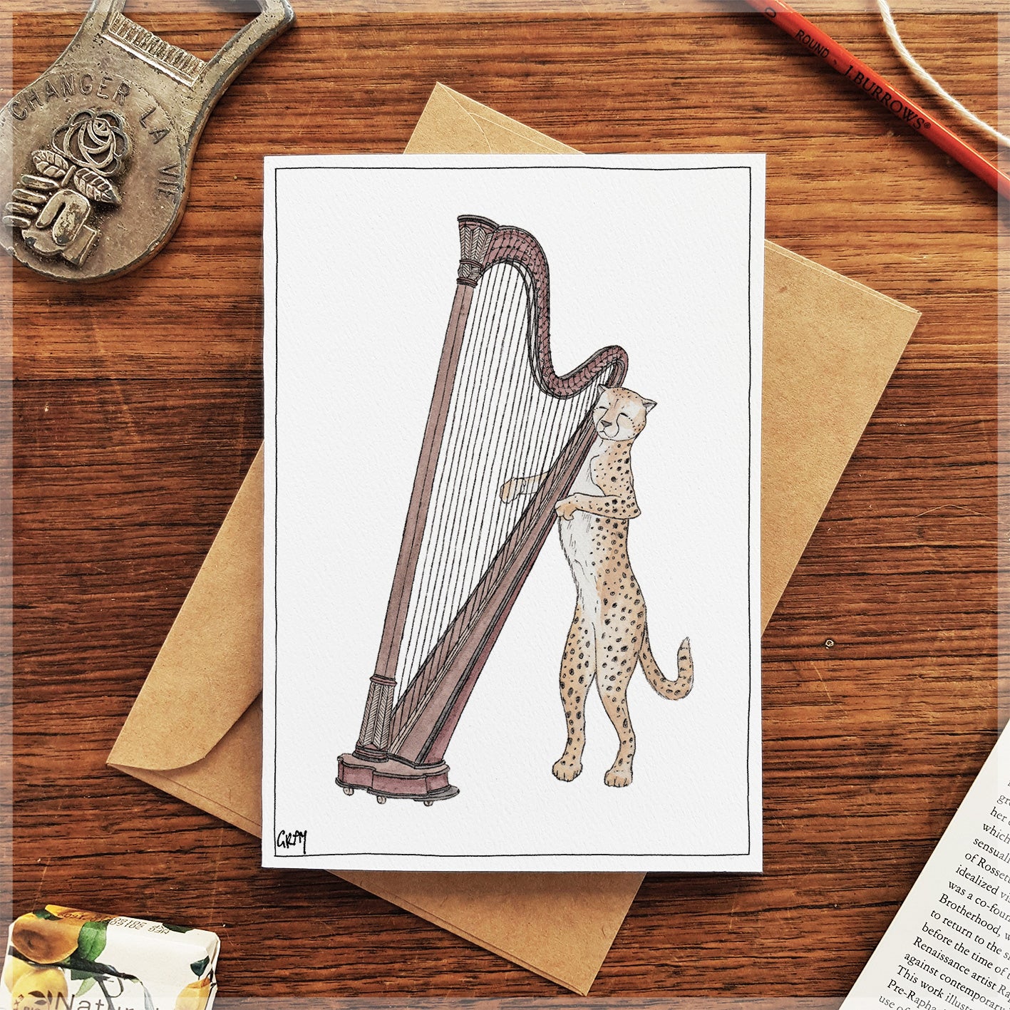 The Cheetah & Her Harp - Greeting Card