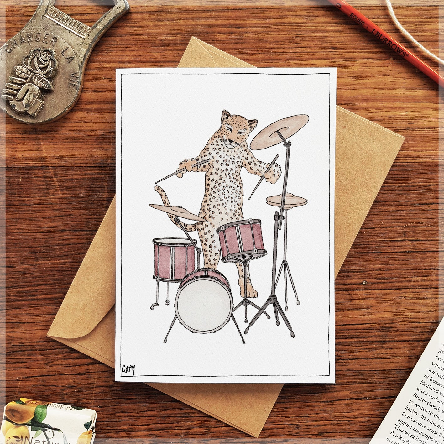 This features alongside 15 other Musical Wild Things in the 'African Orchestra' playing card pack! This illustration will be on the Queen of Clubs, the suit of rhythm loving Big Cats. You can find it in the Playing Cards Section ;)