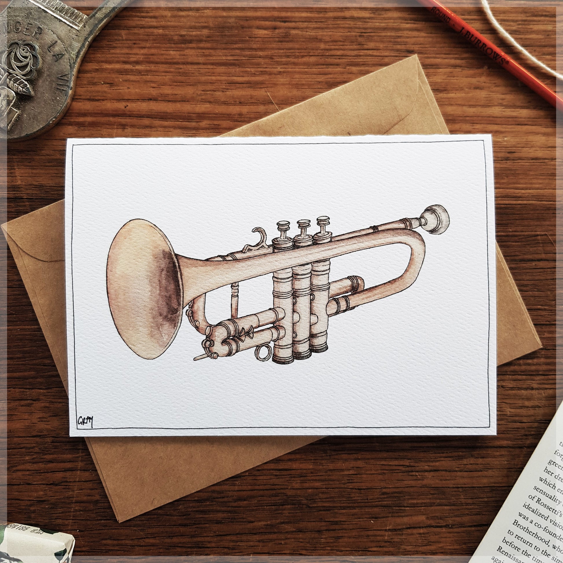 An illustration of a vintage trumpet. This particular trumpet is inspired by that of the wonderful and talented Louis Armstrong :)