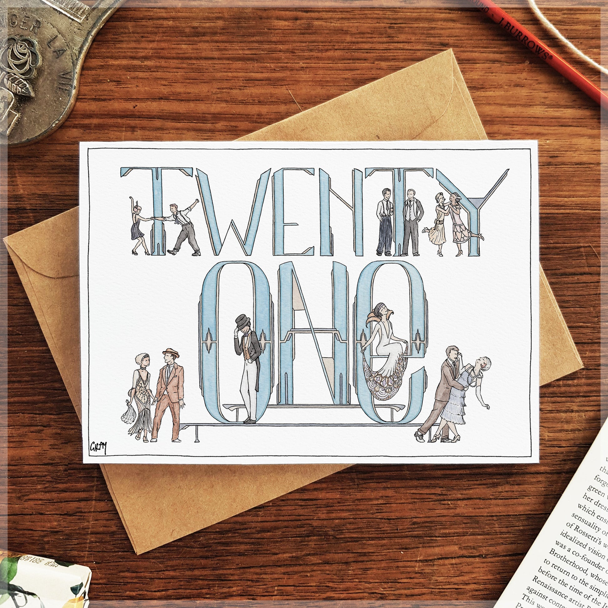 An Art Deco style 21st birthday card. Perfect for lovers of glamorous times, fonts, fashions and of course, all things Great Gatsby.