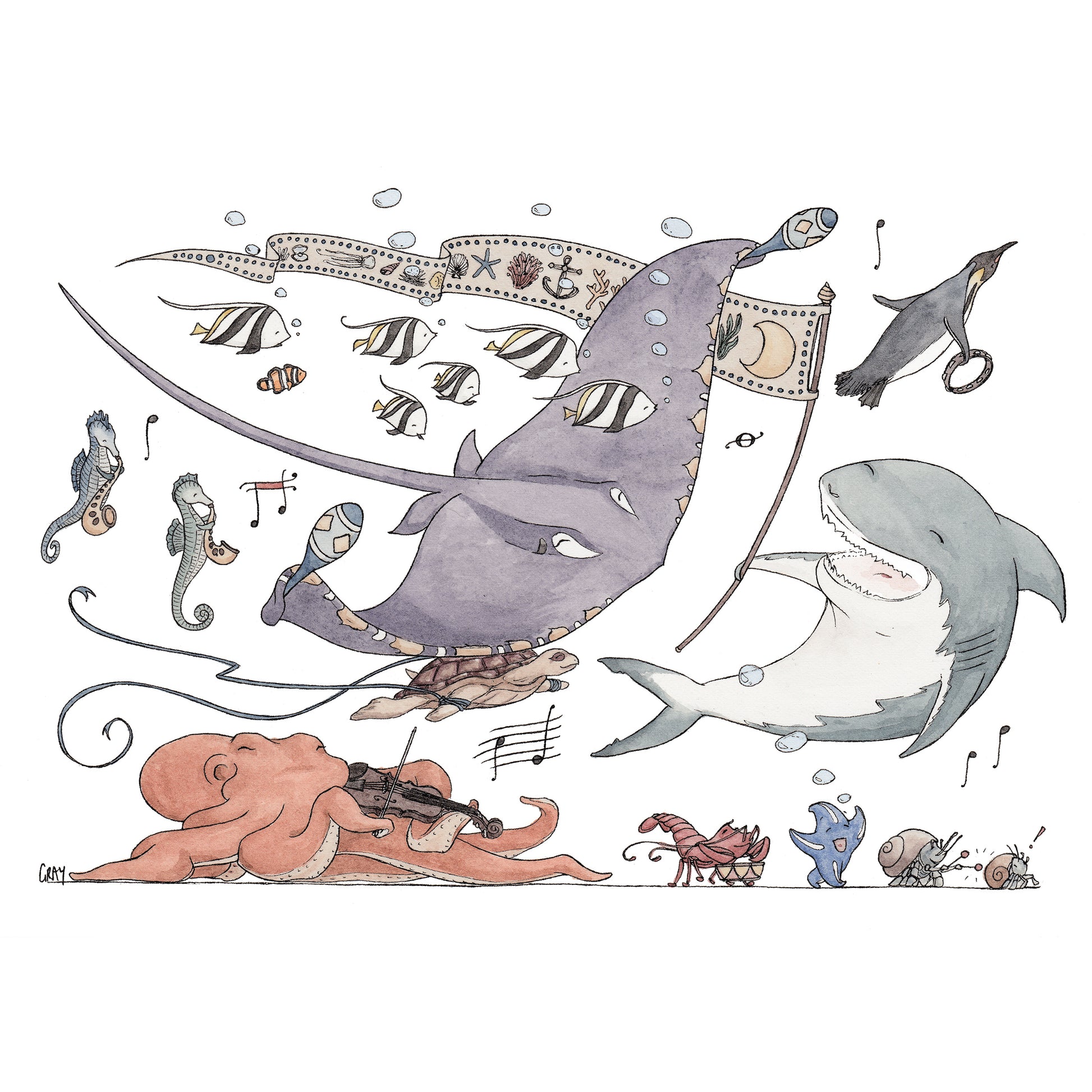 The Original Ink and Watercolour Illustration was created by Avi Gray ©